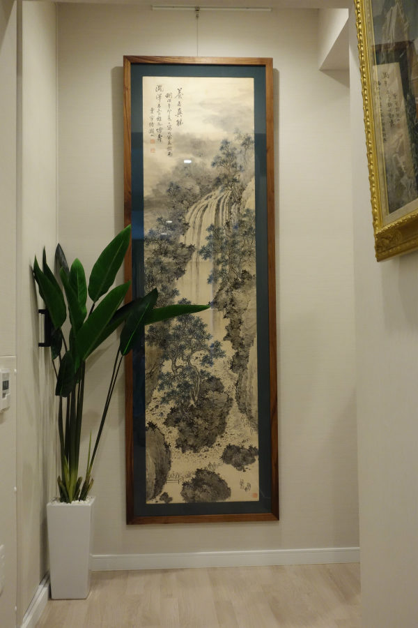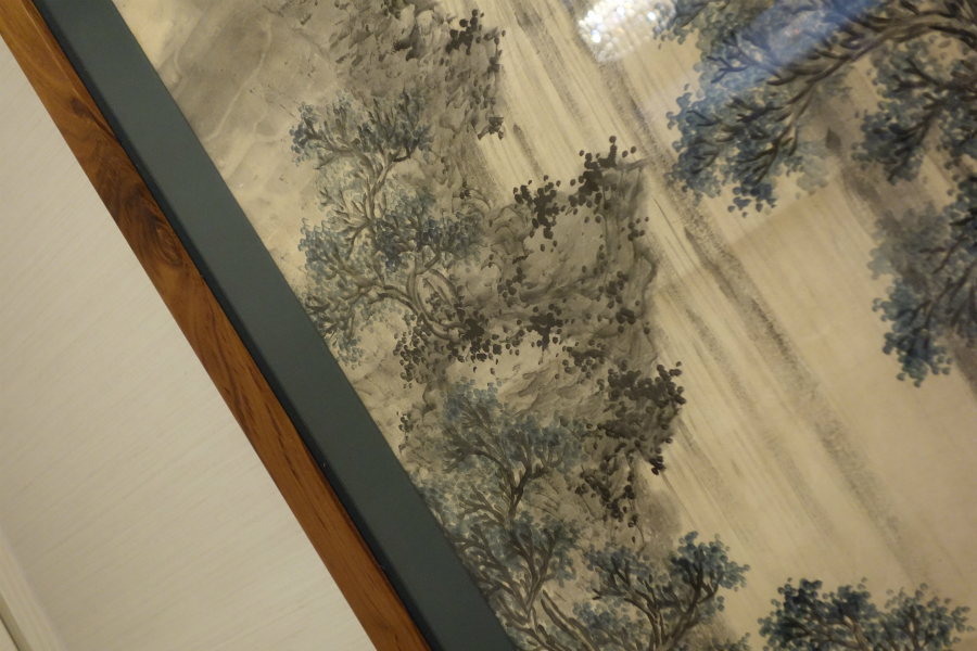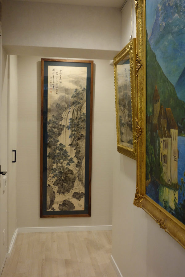 水墨画を今の暮らしに映えるブラックウォールナットの額縁に仕立てて飾る
