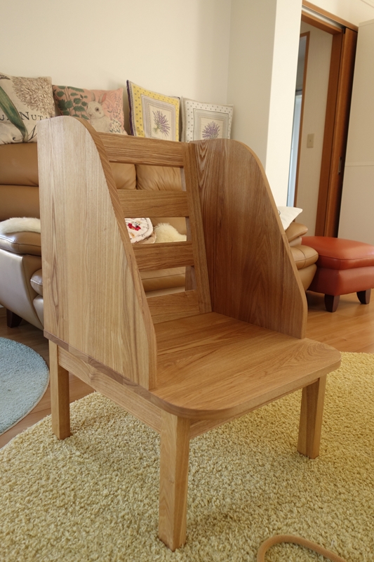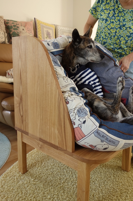 今回は犬さんのために設計した椅子ですが、完成してみると、人が掛けても快適に使える座り心地に仕上がりました。