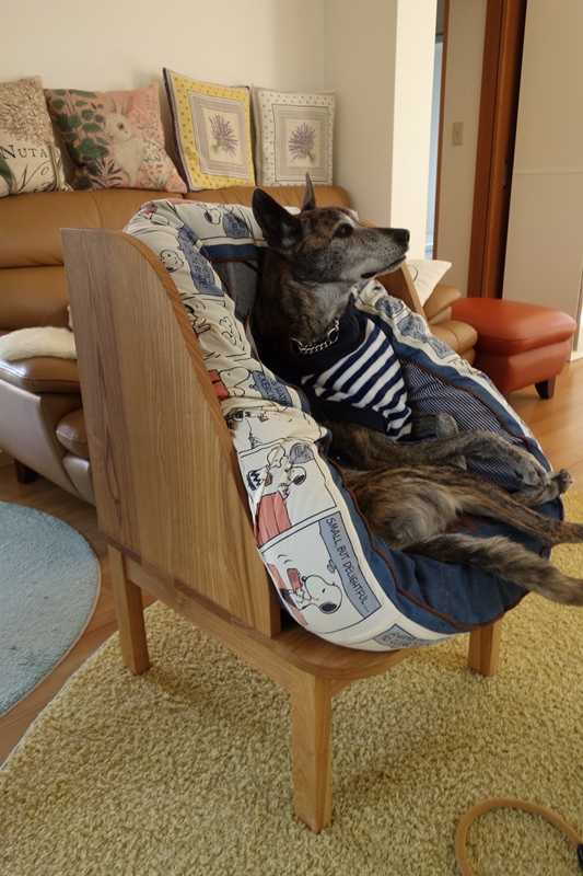 愛犬がくつろぐそのそばで、飼い主さんも肩の力を抜いてひと休み。と、犬さんが使わない時には、ご自身を労わる居場所としても使うことで、共に同じ空間、同じ時間を分かち合える、より活きる椅子になっていくのではないでしょうか。