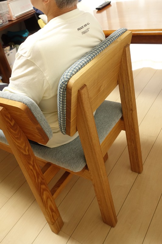 今まで使っていた椅子(ベンチ)に、背もたれを取り付けてもらい、かさばらずに大変使い心地もよい。腰痛にも楽な角度を考えてくださり、嬉しいです。オーダー家具にしてよかったと思います。