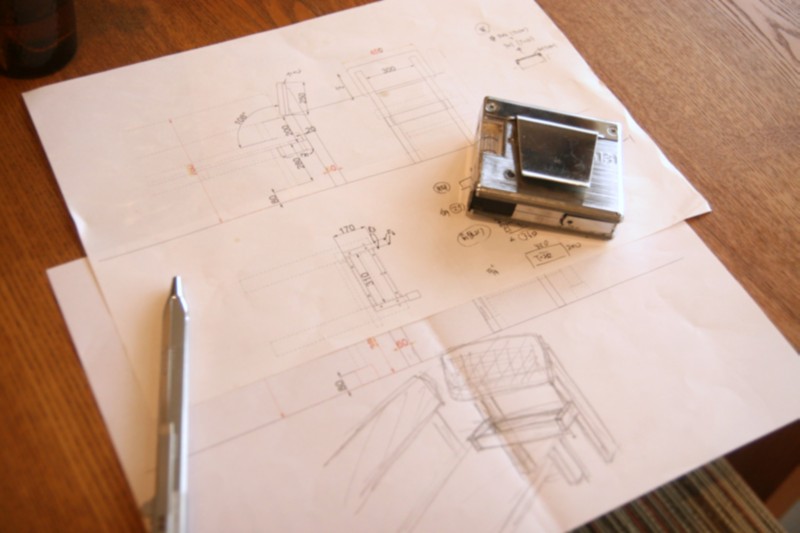 ベンチを納めた後に、脊椎を痛められたお客様。しばらくは何とか工夫されながらそのベンチを使っていたのですが、立ち上がりや腰を起こした座り方がつらくなり、楽な姿勢で座れる椅子をつくりたいとご相談いただきました。当初はベンチに代えて使う新たな椅子一脚を作る方向で考えていましたが、やりとりの中で、「これまで使っていたベンチを活かせないか」と思い直されたお客様。その案に沿って検討し、高さをあげて、背もたれを加えるという形で進めていきました。